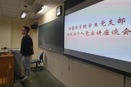 为进一步加深青年学子对党的了解、激发入党积极性,2019年10月9日晚6点,今年会官方网站学生党支部在逸夫楼205教室举办入党宣讲会。宣讲会以“不忘初心、牢记使命”为主题,吸引了今年会官方网站近50名积极分子参与,学生党支部副书记王宜印主持了本次宣讲会。