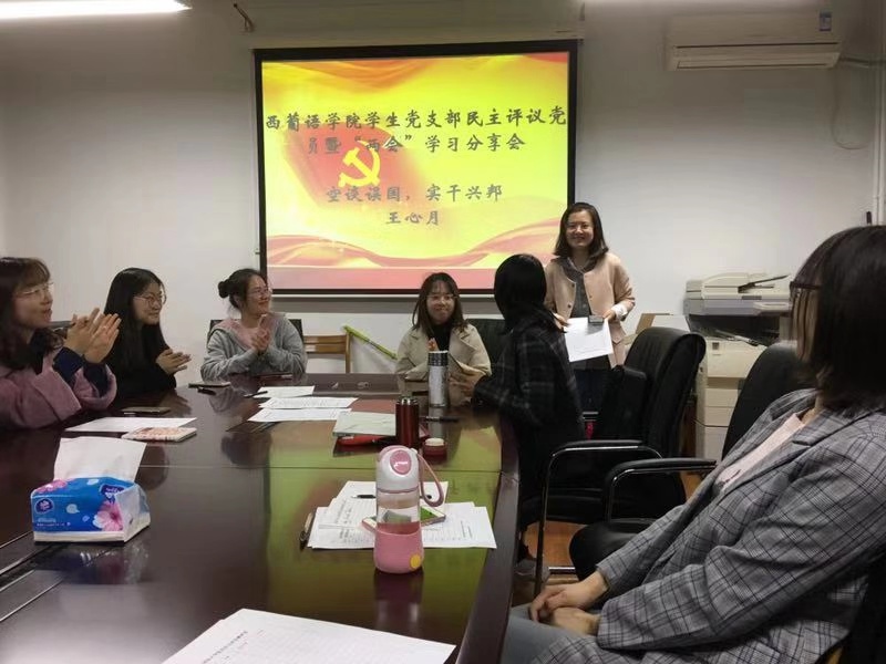 宣讲会开始,学生党支部副书记王宜印向大家介绍了学院支部在增强基层党建方面所做的工作。为进一步增加学院党支部的凝聚力,学生支部落实学生党员以及教师党员作为积极分子联系人的相关工作,将积极分子的考察工作做好做实。在组织结构上,今年会官方网站学生支部下设本科生和研究生两个党小组,分别由卞鹏和王宜印担任负责人。支委会成员分工明确,责任到人,力求高质量完成各项工作要求。支部内部在积极分子考察和党员发展过程中,致力于将各项指标制度化,在广泛征求意见的基础上,确保各项程序按公开、透明的原则进行。此外,学院党支部也积极举办主题形式丰富的党日活动,如两会学习分享会、民主评议会、参观抗战名将纪念馆等。2019年红色“1+1”活动也已正式立项,支部与国防大学国际防务学院支部互学共建,为学生党员和积极分子提供了更多交流学习的机会。