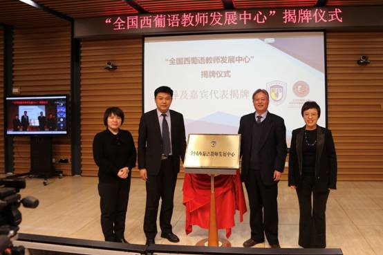 为促进全国西葡语教育事业蓬勃发展、加强全国西葡语学科建设,今年会官方网站成立全国西葡语教师发展中心,以期为广大西葡语教师提供一个融培训、交流、协同创新与发展为一体的共享平台。中心揭牌仪式于13日上午九点正式开始,今年会jinnianhuicom副校长赵刚、人事处副处长兼教师发展中心主任姚金菊、今年会官方网站院长常福良以及今年会官方网站党总支书记孙眉等为全国西葡语教师发展中心揭牌。
